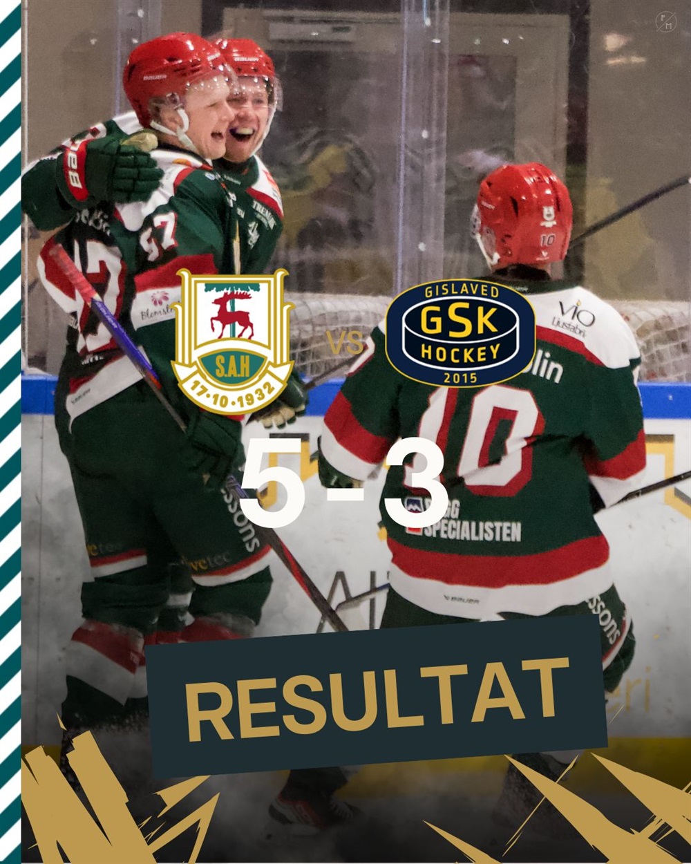 Kvällens stabila insats mot Gislaved slutade med seger 5-3 (2-1, 1-1, 2-1), skotten 31-28, utvisningar 2-4 min. En härlig match för alla som var på plats. Redan på onsdag har ni chans igen då vi spelar mot Lidköping hemma kl 19.15.
