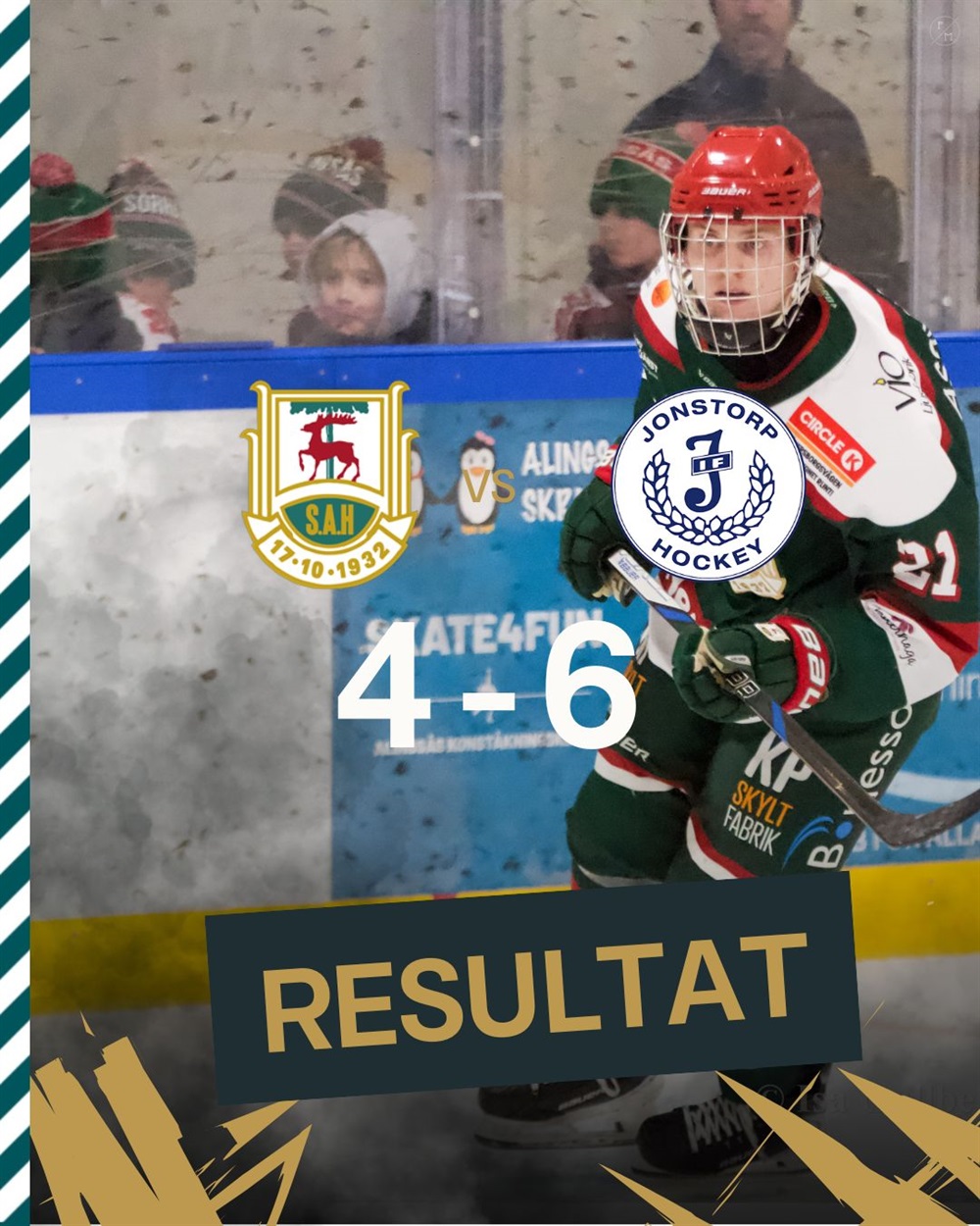 Det blev tyvärr förlust mot Jonstorp i eftermiddagens match hemma i Nolhaga med 4-6 (1-1, 1-1, 2-4), skotten 32-29, utvisningar 6-6.