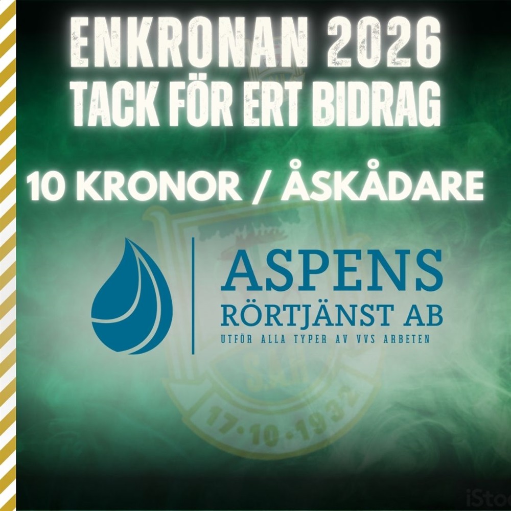 Nu går även Aspens Rörtjänst in och stöttar med 10 kr/åskådare vid Enkronasmatchen den 1 feb. De antarockså VIO Ljus utmaning till företagen att gå in och stötta med minst 10 kr. Underbart med stödet till föreningen från Aspens rörtjänst.