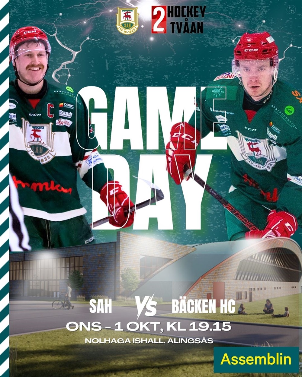Bäcken tog precis som SAH, 2 poäng i första matchen när de slog Vänersborg efter förlängning. Vi ser fram emot en spännande och rolig match under kvällen.