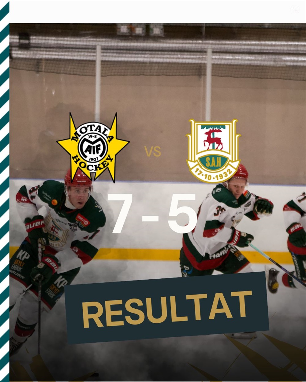 Det blev ännu en målrik match ikväll men denna gång blev det tyvärr förlust mot Motala borta med 7-5 (3-0, 1-2, 3-3), skotten 37-36, utvisningar 8-2.