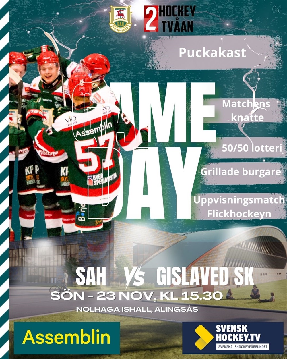 Imorgon söndag är det dags för hemmamatch igen för vårt A-lag när vi tar emot Gislaved SK. Det kommer hända mycket kring matchen denna söndag. Tex blir det comeback för Puckakastet igen i andra periodpausen. I första periodpausen så blir det uppvisningsmatch av Flicklaget och i kafét kan man köpa sig glögg och Hamburgare grillas vid entrén. Vi öppnar entrén kl 13.30.