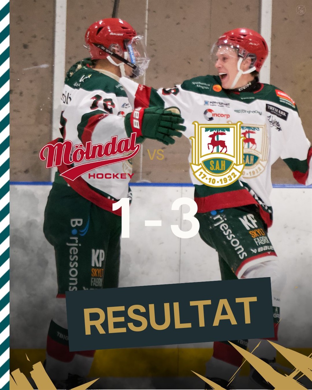 Kvällens bortamatch mot Mölndal slutade med en härlig seger, matchen slutade med 1-3 (1-1, 0-1, 0-1), skotten 37-33, utvisningar 10-10.
