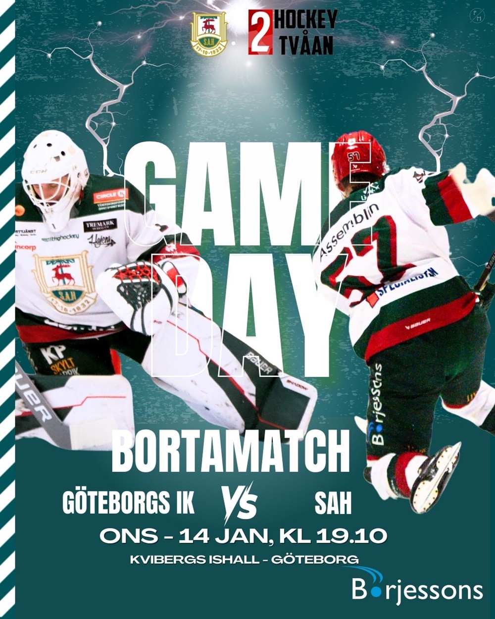 Under förmiddagen så sätter sig A-laget i bussar från Börjessons Bil för bortamatchen mot serieledarna Göteborgs IK i Kviberg ishall. Matchen startar kl 19.10.
